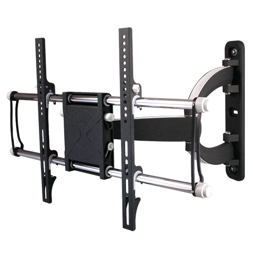 Our Cotytech LGLI-MW-6A1B full-motion articulating corner-cantilever wall mount bracket is affordably priced and designed to accommodate 32 to 60-inch flat panel LCDs, LEDs and plasmas with wider VESA mounting patterns up to 800 x 400. If you measure the distance (first across, then from top to bottom) from the center of one mounting hole to the next on the back of your big screen flat panel HD television set and realize that it is wider than 600 x 400 but under 800 x 400 millimeters, this super sturdy Cotytech corner-cantilever TV wall mount bracket will fit your TV with no problem. Boasting a lightweight die-cast aluminum construction, the LGLI-MW-6A1B is incredibly durable and able to support a maximum weight of 120 pounds. Not only that, but this bracket is perfect for corner mounting big screen flat panel TVs because it has a slim, single-stud wall mounting plate, which can be bolted close to the corner and hidden completely behind the TV by simply positioning the television screen in a cater-cornered fashion. Once installed the LGLI-MW-6A1B corner mount also allows you to tilt your television +5 degrees up, -15 degrees down and swivel it 180 degrees left or right, providing for easy angle adjustment and a comfortable TV viewing experience from any seating location in your room.